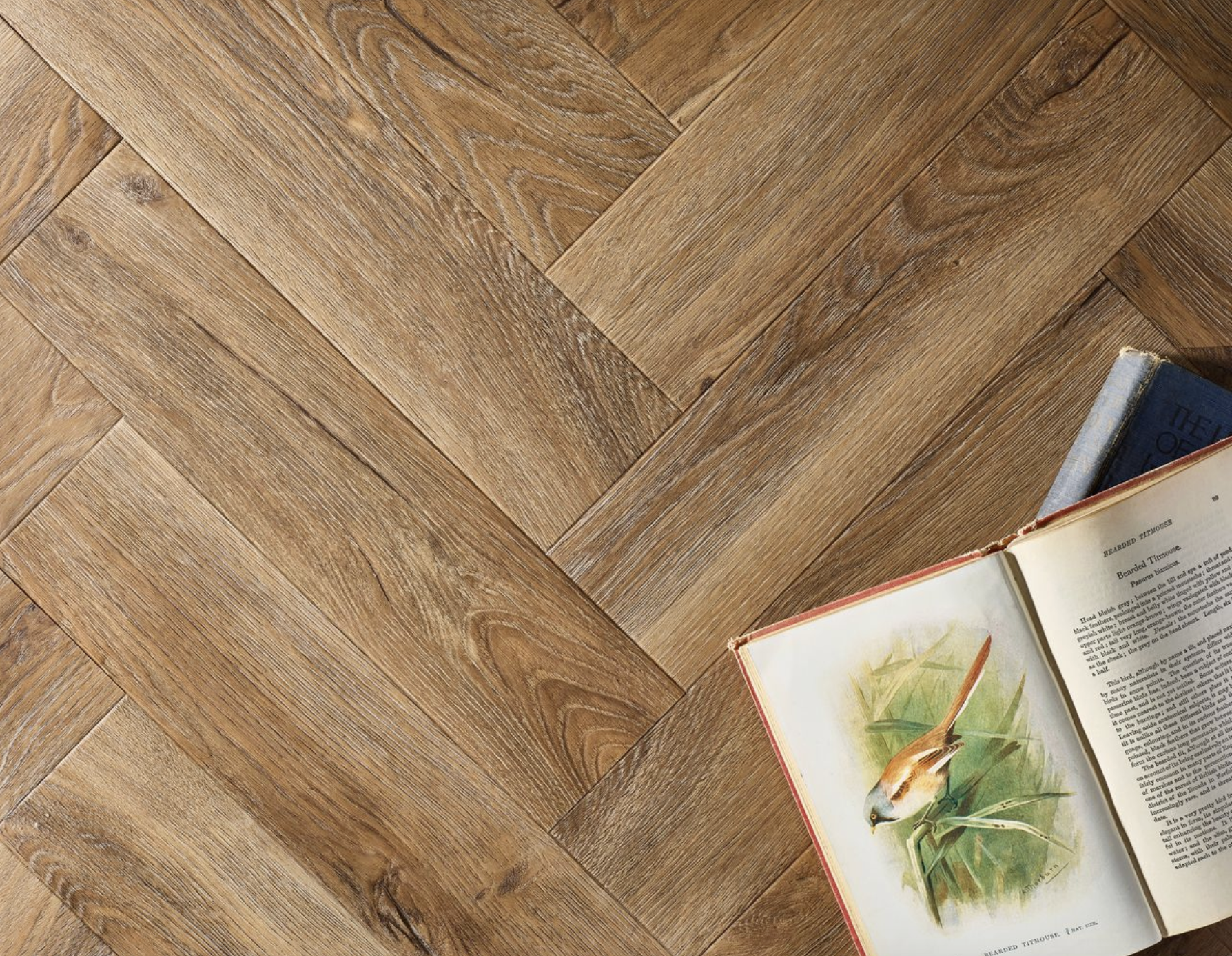 Textures 'Distressed Oak' Herringbone Stick Down LVT Flooring